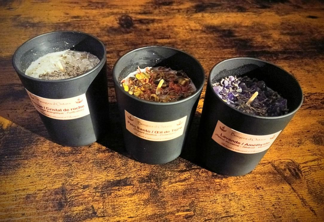 Cette bougie vous fera profiter des bienfaits du Palo Santo (bois de Santal) propices à convoquer les énergies positives et bienveillantes. Les chakras du cœur mais aussi couronne sont les plus réceptifs à cette plante qui a, en plus de sa vocation purificatrice, la capacité de relier le cœur à l’esprit et à attirer la positivité et la chance. L'association de l’œil de tigre, pierre de protection énergétique, agit comme une barrière à la négativité et à la malveillance. Il a la capacité d’équilibrer et d’harmonie le yin et le yang présents en chacun de nous.